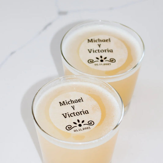 50 Edible Personalized Flower Wreath Wedding Cocktail Toppers, 50 Edible Beverage Drink Garnish