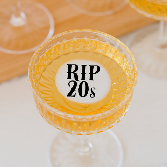 50 Edible RIP 20s 3 Pack set CocktailToppers, 50 Edible Birthday Party Beverage Drink Garnish