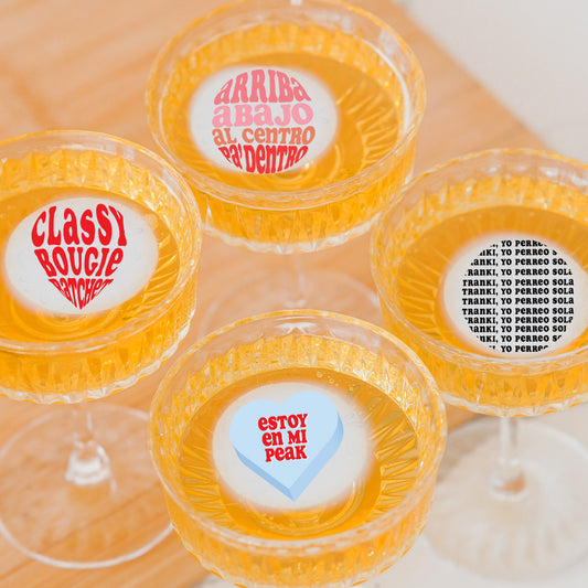 50 Edible Party Girl Perreo Bad Bunny Pack of Cocktail Toppers (4 Designs) - Valentine's Day Galentine's Cocktail Toppers