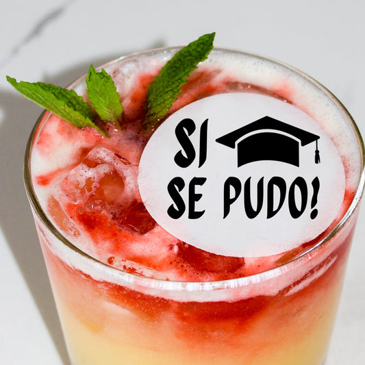 50 Edible Spanish Si Se Pudo Cocktail Toppers, 50 Edible Graduation Beverage Drink Garnish
