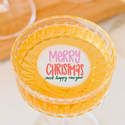 50 Edible Merry Christmas & Happy New Year Cocktail Toppers, 50 Edible Holiday Party Beverage Drink Garnish