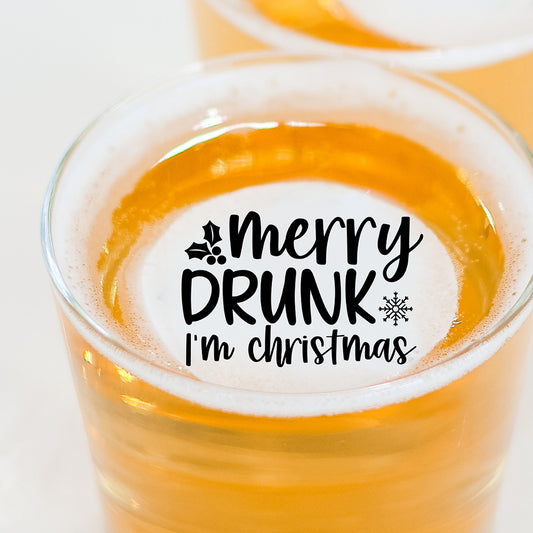 50 Edible Merry Drunk Christmas Cocktail Toppers, 50 Edible Funny Xmas Party Beverage Drink Garnish
